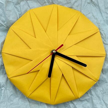 Al tid er foldetid. Holstein Folds har designet et vægur med en diameter på 23 centimeter og med tre visere og et lydløst urværk.